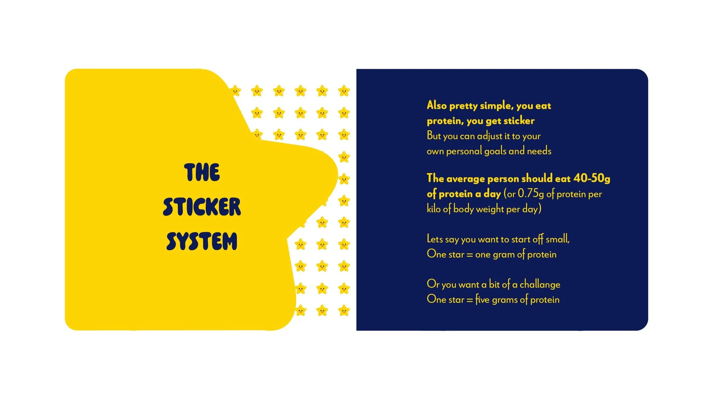 Protein Pal encourages the user to eat more protein through a fun and nostalgic rewards system. Though most people in the United States tend to eat more protein than they should, there’s still a fair amount of people who don’t eat enough protein, which can have a negative effect on their health. The majority of current protein trackers are targeted towards men or gym rats, but they aren’t the only individuals who struggle to eat enough protein. As a vegetarian, and ex-vegan, I almost always have trouble forcing myself to eat enough protein and I know many who struggle with the same thing, either due to dietary restrictions, health issues, or lifestyle. Protein Pal is intended to appeal to people outside of the gym lifestyle who want to eat more protein. It takes the focus away from having to constantly and compulsively check nutrition labels and instead finds a way to bring joy to what is normally considered a chore. The sticker-based “chore chart” may be similar to one you had to use as a child, but what better way to face adult challenges than with the enthusiasm of a child.